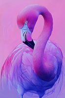 Deze dromerige interpretatie van een flamingo combineert vloeiende overgangen van zachte roze naar diepe paarse tinten, wat een serene en betoverende sfeer oproept. De delicate texturen van het verenkleed zijn met uiterste precisie vastgelegd, terwijl het subtiele kleurenspel een gevoel van harmonie en elegantie uitstraalt. De gracieuze houding van de flamingo wordt versterkt door de minimalistische achtergrond, wat dit kunstwerk een perfecte keuze maakt voor moderne interieurs die een vleugje verfijnde schoonheid willen toevoegen.