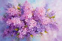 Een kleurrijk digitaal schilderij van dromerige paarse Sering. Het werk geeft een dromerige en kleurrijke uitstraling aan uw interieur!