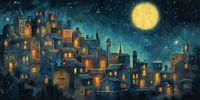 Koop dit digital art kunstwerk Dromerige Stad onder de Volle Maan van Whale & Sons als reproductie op canvas, aluminium dibond, (ingelijste) fotoprint, behang en ArtFrame, op maat geprint in Fine-Art kwaliteit.