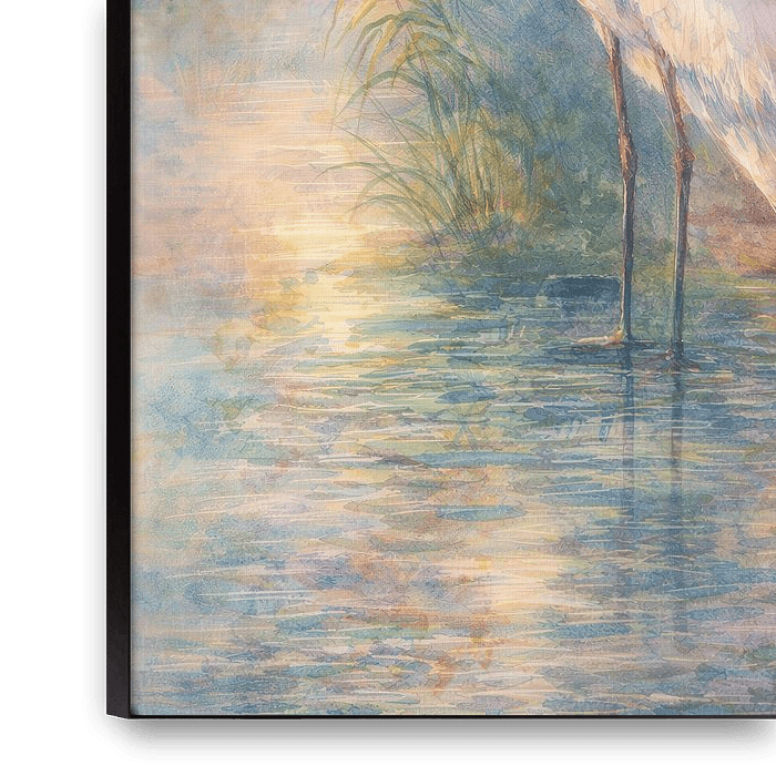 Breng rust, licht en natuurlijke elegantie in je interieur met deze sfeervolle aquarel van een witte reiger. Het schilderij toont de gracieuze vogel die stil in het water staat, omringd door zachte kleuren en een dromerig landschap. De transparante aquareltechniek zorgt voor een licht en bijna etherisch effect, waardoor het kunstwerk…