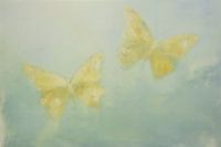 Een kleurrijk digitaal schilderij twee gele vlinders. Het werk geeft een dromerige en klassieke uitstraling aan uw interieur!