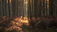Een prachtig dromerige herfstochtend in het Speulderbos. De ochtendzon verwarmde de roodbruine varens waardoor er een beetje damp omhoog steeg. Dit geeft warm en sfeervol plaatje.