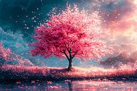 Laat je inspireren door dit adembenemende kunstwerk dat de pracht van een kersenbloesemboom vastlegt. Met levendige tinten roze en een serene reflectie in het kalme water brengt dit ontwerp een gevoel van rust en schoonheid in elke ruimte. De subtiele kleurcontrasten en dromerige achtergrond maken het perfect voor wie op zoek is naar een uniek en sfeervol stukje wanddecoratie. Ideaal voor woonkamers, eetkamers of zelfs slaapkamers waar een vleugje natuur en elegantie gewenst is. Een perfecte keuze om een warme en artistieke uitstraling aan je interieur toe te voegen.