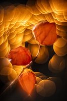 In mijn studio zette ik de gedroogde vruchten van de *Physalis alkekengi* in de schijnwerpers. Hun delicate structuren, met nerven die als kantwerk doorschijnen, straalden een ingetogen schoonheid uit. Om de foto extra gelaagdheid te geven, hing ik een snoer met lampjes achter de vruchten. Deze lampjes werden niet als lampjes herkend,…