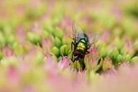 Ik heb deze macrofoto van een vlieg gemaakt in de tuin. Deze vlieg zat op een plant dat zowat bloeide. Het mooie aan deze foto vind ik de scherpte diepte werking. De plant waar deze vlieg op zat bloeit in de zomer en sterft in de herfst weer af.
