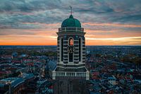 Een vurige zonsopgang boven htet hart van Zwolle, met de Peperbus als trotse blikvanger in het midden. De eerste zonnestralen breken door het wolkendek en kleuren de hemel in een explosie van roze, oranje en blauw. Het is dat zeldzame moment waarop de stad nog stil is, maar de dag zich al aankondigt. Vanuit dit hoge perspectief ontvouwt…