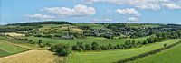 Drone panorama van Eys in Zuid-Limburg met de beroemde Eyserbosweg en het Eyserbos in een beel gevangen