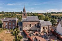 Dronefoto van de Heilige Cunnibertuskerk in Wahlwiller in de Zuid-Limburgse gemeente Gulpen-Wittem
