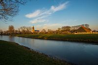 Skyline van Dronrijp in Frieland in de ondergaande zon.
