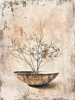 Een verstild portret van een vergankelijk moment. De verweerde schaal, met daarin een fragiel boeket droogbloemen, lijkt haast tastbaar tegen de verweerde achtergrond. Het werk straalt een ingetogen schoonheid uit en legt de nadruk op rust, verstilling en de kracht van het eenvoudige. De aardse tinten en subtiele texturen geven het geheel een tijdloze uitstraling die moeiteloos past in een rustig interieur met karakter.