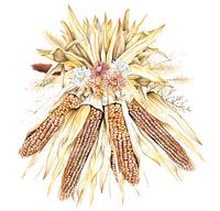 Droogbloemen en maiskolven gemaakt in aquarel