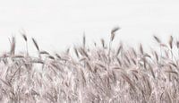 Prachtige afbeeldingen van droogbloemen in naturel tinten. Passend bij de huidige trend en stijl. Rustgevende, in natureltinten uitgevoerde afbeelding van helmgras, droogbloemen tegen een neutrale lichte achtergrond. sweet embrace.