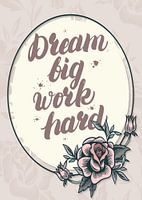 Motiverende woorden in een bloemenframe Droom Groot Werk Hard