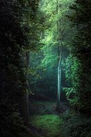 Loofbos op een mistige zomerochtend - foto bewerkt met verschillende Photoshop-filters