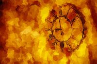 Droom tijd. rood gele artiestieke olieverf achtige afbeelding van de tijd weergegeven in een droom achtige mysterieuze situatie.