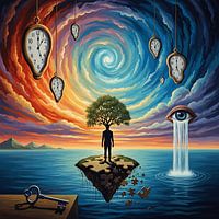 Een surrealistisch kunstwerk dat droom en werkelijkheid vermengt tot een poëtische visuele reis. Zwevende vormen, gloeiend licht en symbolische elementen creëren een mysterieuze sfeer die uitnodigt tot diepe interpretatie. Dit kunstwerk brengt een moderne surrealistische esthetiek, perfect voor eigentijdse interieurs, creatieve ruimtes…