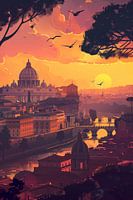 Fantasierijk Rome-motief in de stijl van een illustratie.