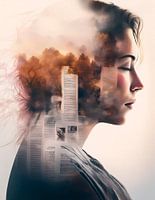 Het silhouet van een vrouw, met dubbele belichting, zij droomt over haar beleving van de afgelopen dag, de natuur en de media. Sluit je ogen en laat de dag voorbij komen... Het beeld is met behulp van ai gegenereerd.