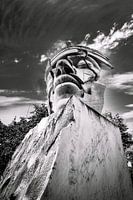 Droom Abstractie Gezicht Sculptuur met Wolken in Zwart en Wit