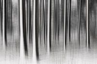 In de winter tijdens in wandeling door de bossen van Waalre zag ik deze boomstammen. De verse sneeuw bedekte aan 1 zijde de stammen. Hierdoor ontstonden er extra sterke verticale contrasten. Tijdens de nabewerking in zwart wit creeerde ik dit dromerige effect.