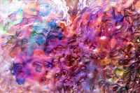 Een abstract expressionistische compositie van impasto aangebrachte acrylverf, die door het spel van licht en schaduw een bijzonder ontspannende stemming creëert. De zomer, het bos, de weiden, de natuur, ontspannen en meditatief. Elk detail roept op tot ontspannen contemplatie.