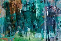 Een abstract expressionistische compositie van impasto aangebrachte acrylverf, die door het spel van licht en schaduw een bijzonder ontspannende stemming creëert. De zomer, het bos, de weiden, de natuur, ontspannen en meditatief. Elk detail roept op tot ontspannen contemplatie.
