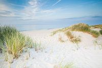 Zomeravond op het droomstrand van het eiland Sylt. De duinen en de Noordzee op het gouden uur.