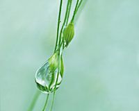 Een vallende druppel. Een beelddecoratie in subtiele groen-tinten. Een subtiel beeld in een fijne pastelgroen. Macrofotografie op haar best.... Zou dit beeld niet heel mooi passen binnen de collectie Tranquil Dawn? Dit is de nieuwe kleur- en verftrend van het jaar 2020!