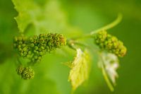 Een macrofoto van een druiventros in knop. Door de scherptediepte ontstaat een mooie groene waas die de associatie geeft van een fragiele plant.