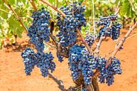 Druivenplant in wijngaard vol blauwe druiventrossen. Deze foto heb ik gemaakt in Portugal waar de vele zonuren de druiven eenvoudig laten rijpen. Van deze druiven wordt ook lekkere zoete rode wijn gemaakt.