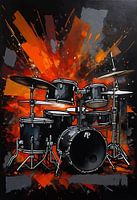 Koop dit schilderij Drumstel Abstract Splatter van MIROKKU als reproductie geprint op canvas, aluminium dibond, (ingelijste) fotoprint, behang en ArtFrame. Voor jou op maat geprint in Fine-Art kwaliteit.
