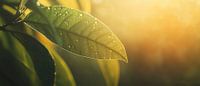 Over ‘Druppelbedekt blad in zonlicht’ van Poster Art Shop