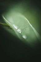Een close-up van druppels in de vouw van een blad