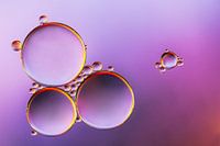 Abstracte kunst van oliedruppels op water met een kleurrijke achtergrond.