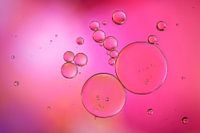 Abstracte kunst van oliedruppels op water met een kleurrijke achtergrond.
