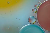 Creatief met oliedruppels en water. Abstract in geel, blauw en bruine ondergrond.