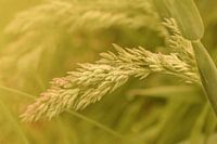 Heldere druppels water die de ochtend hebben overleefd, kleefden nog aan de aar.