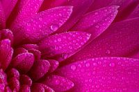Je ziet een detail van een gerbera met daarop waterdruppels. Foto is gemaakt in een lichttent en de waterdruppels zijn erop gesproeid. De waterdruppels voegen iets extra's toe aan de foto. Het geeft het gevoel van een delicaat geheel.