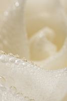 "Druppels op een roos" is een macrofoto van een klein stukje van een prachtige crème (gele) kleurige roos, waar heel veel kleine waterdruppeltjes op liggen. Bij het maken van deze foto heb ik gekozen voor een geringe scherptediepte, waardoor de maar een klein deel (een stuk van het randje met druppels) scherp is en alles wat ervoor en erachter ligt langzaam vervaagt. Dit geeft een dromerige sfeer en brengt een gevoel van diepte in het werk.