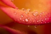 van een oranje rode roos (warme kleuren) met waterdruppeltjes.