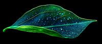 Fris, levendig groen ontvouwt zich op deze prachtige bladillustratie, terwijl fijne waterdruppels zich erop nestelen als kostbare sieraden. De fascinerende details en diepe kleuren brengen een kalme, aardse sfeer in elke kamer. Perfect voor de slaapkamer of een ontspannend hoekje in de woonkamer, het creëert een harmonieuze verbinding met de natuur.