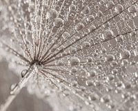 "Druppeltjes gedragen door een natuurlijk paraplu" is een (extreme) macrofoto van een deel van een pluisje van een morgenster (Tragopogon) van schuin onderaf gefotografeerd.