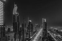 Dubai @ Level43 uitzicht over de E11 Sheik Zayed road financial district Dubai downtown met op de achtergrond de Burj Khalifa