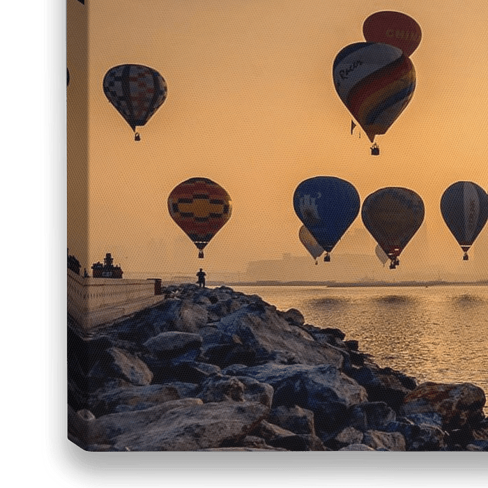 Tijdens zonsopkomst starten alle ballonnen en drijven voor de skyline van de Dubai Marina. Een uniek gezicht!