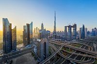 Koop de foto Dubai bij zonsopgang van Dieter Meyrl op canvas, aluminium dibond, (ingelijste) fotoprint, behang en ArtFrame, op maat geprint in Fine-Art kwaliteit.