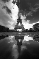 weerspiegeling van de Eiffeltoren in een net gevormde plas