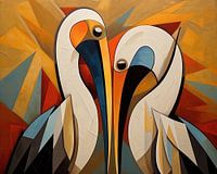 Dubbele Elegantie - kleurrijke, abstracte ooievaars