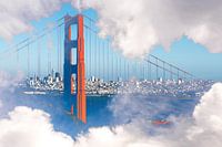 Dubbele belichting Golden Gate Bridge en skyline San Francisco California USA achter wolken