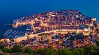 De historische stad Dubrovnik ligt in het zuiden van Kroatië aan de Adriatische kust, en is een van de grootste toeristische trekpleisters van het land. De oude ommuurde stad is deel van Unesco Werelderfgoed. Hier zien we de stad tijdens het blauwe uur vanaf de berg.