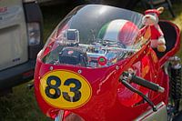 Schitterende geprepareerde Ducati 250cc een-cilinder wegrace machine op de Classic TT op het industrieterrein "Het Talent" in Winsum Groningen.